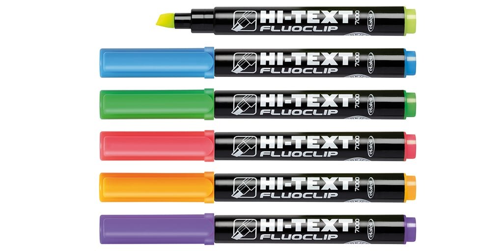 Evidenziatori punta scalpello, inchiostri pastello e fluo. Perfetti per evidenziare in modo elegante o brillante, ideali per studio e lavoro.